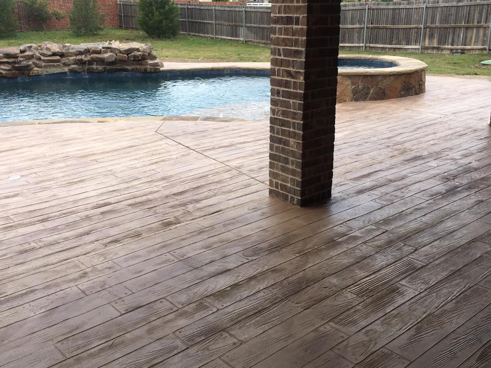 Le béton imprimé bois se pose aussi bien en intérieur qu’en extérieur. Notez bien les qualités qui se dégagent d’ambiances habillées de béton imprimé bois de cette maison de la chambre, à la piscine !