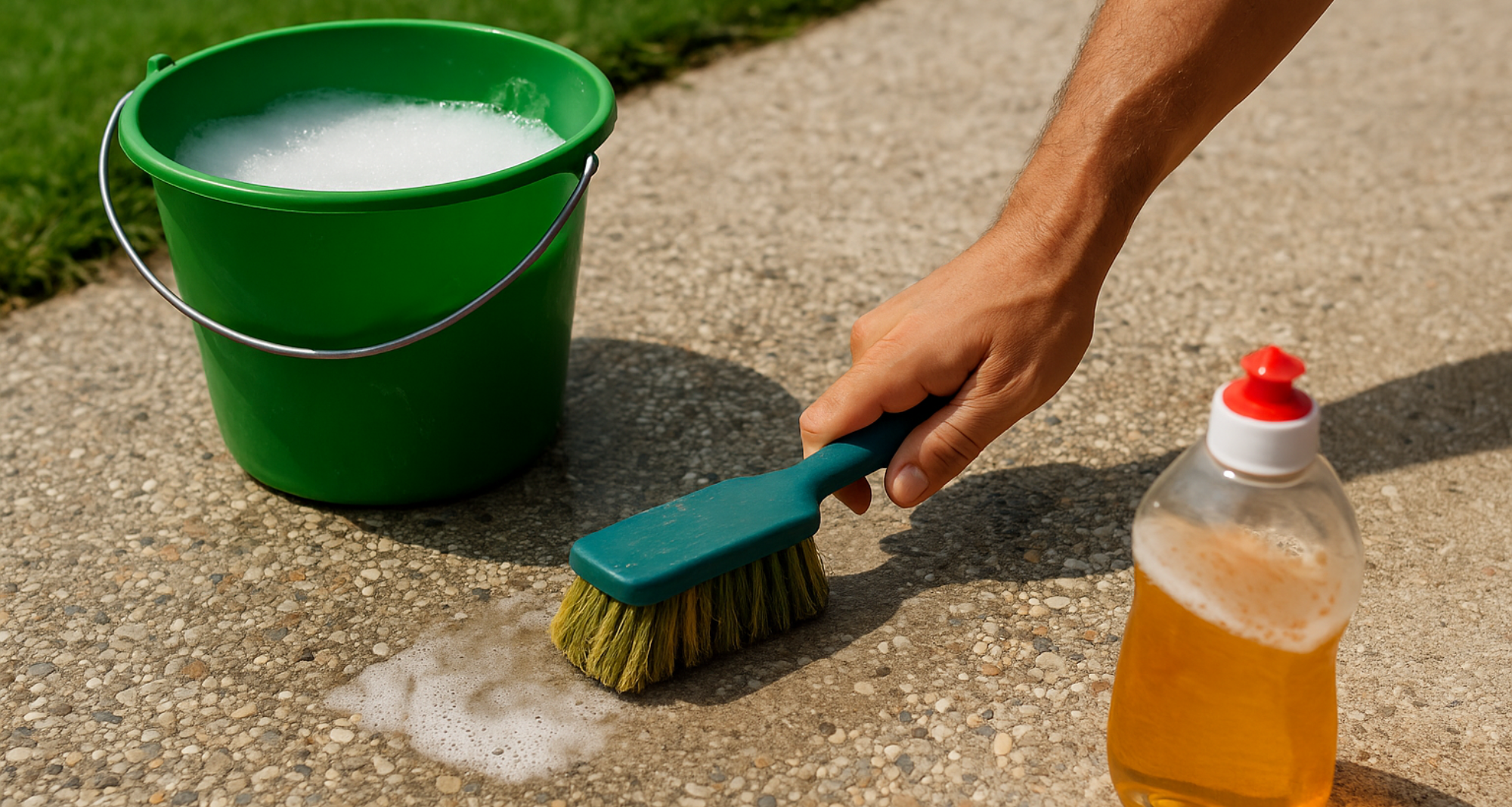 Les produits acides comme le vinaigre peuvent détériorer votre béton désactivé en profondeur. Aspergez d’eau votre sol le plus rapidement possible !