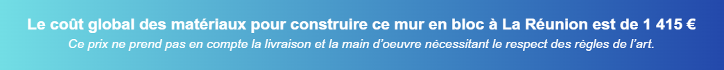 Le prix d’un bloc américain à La Réunion varie entre 1,30€ et 1,50€ l’unité. C’est un matériau peu coûteux, écologique, ayant un bon rapport qualité/prix. Pour un mur de clôture, nous partirons sur des blocs américains 20x20x40 à crépir.