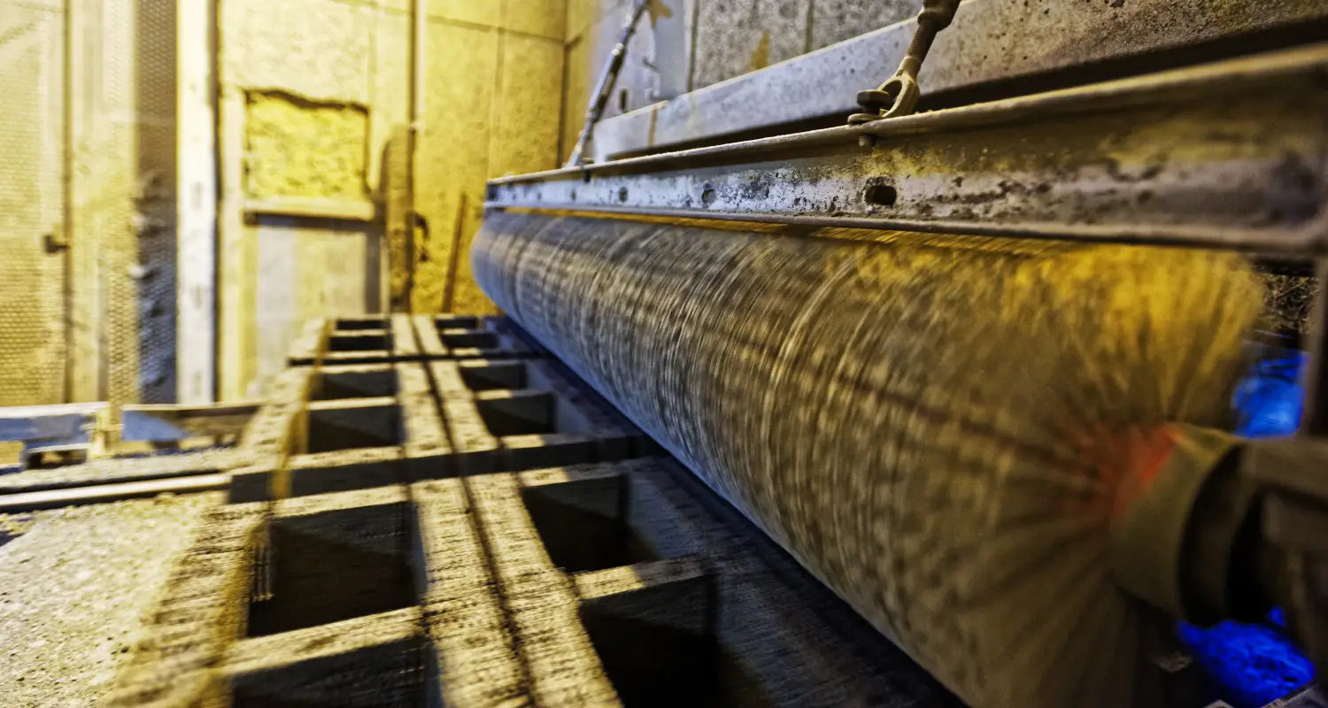Un procédé entièrement automatisé, suivi depuis un poste de contrôle situé au cœur de l'usine de production. Aux commandes, notre chef opérateur, Eric Numa, qui depuis plus de 30 ans veille au bon déroulement de la production des blocs. Accompagné de son équipe d'opérateurs et de techniciens, ils surveillent et régulent l’installation de production.